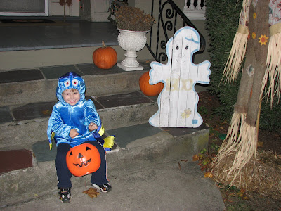 At the end of the evening, he was so tired he could barely carry his pumpkin, and he was weaving around. Finally he asked me to go home, that he didn't want any more candy (gasp!)